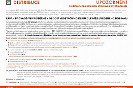 UPOZORNĚNÍ ČEZ DISTRIBUCE k odstranění a okleštení stromoví a jiných porostů. Pokud by text takto nebyl dostatečně čitelný, rozklikněte si prosím původní PDF dokument