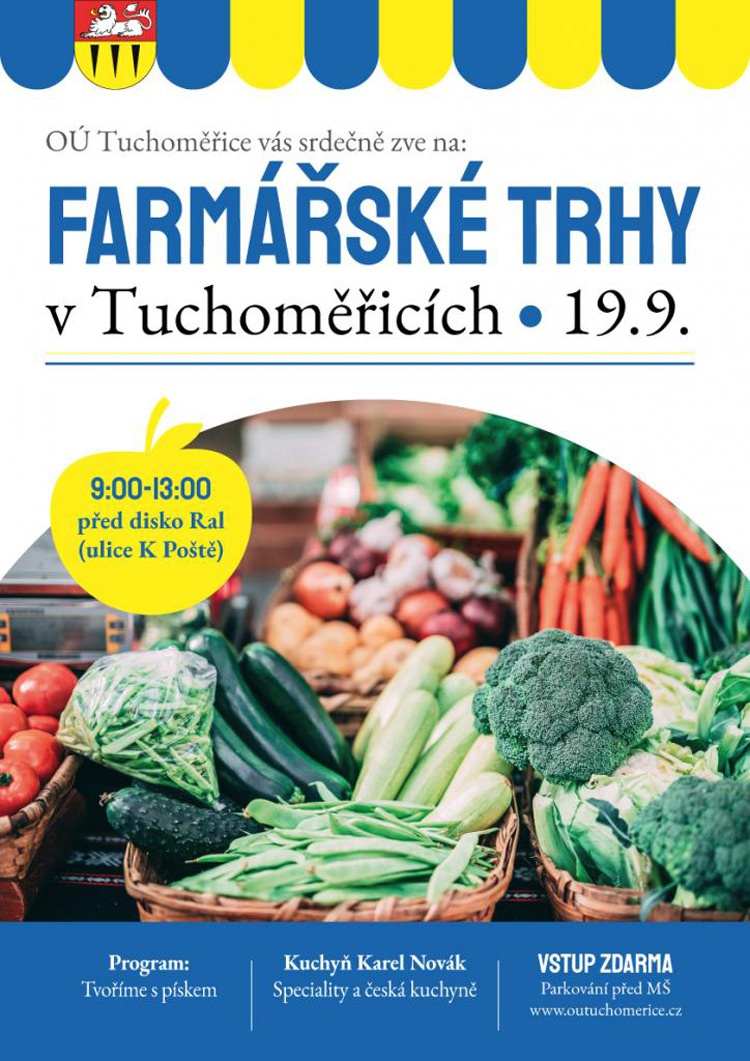 zářijové farmářské trhy v Tuchoměřicích jsou pro Vás po prázdninách připraveny na 19.9.2020.