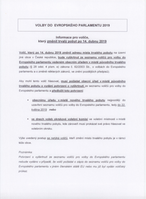 | Volby do Evropského 2019 doc. 2 [PNG, 340.9 kB, Změněno: 10. 4. 2019] Informace pro voliče, který změnil trvalý pobyt po 14.04.2019. |